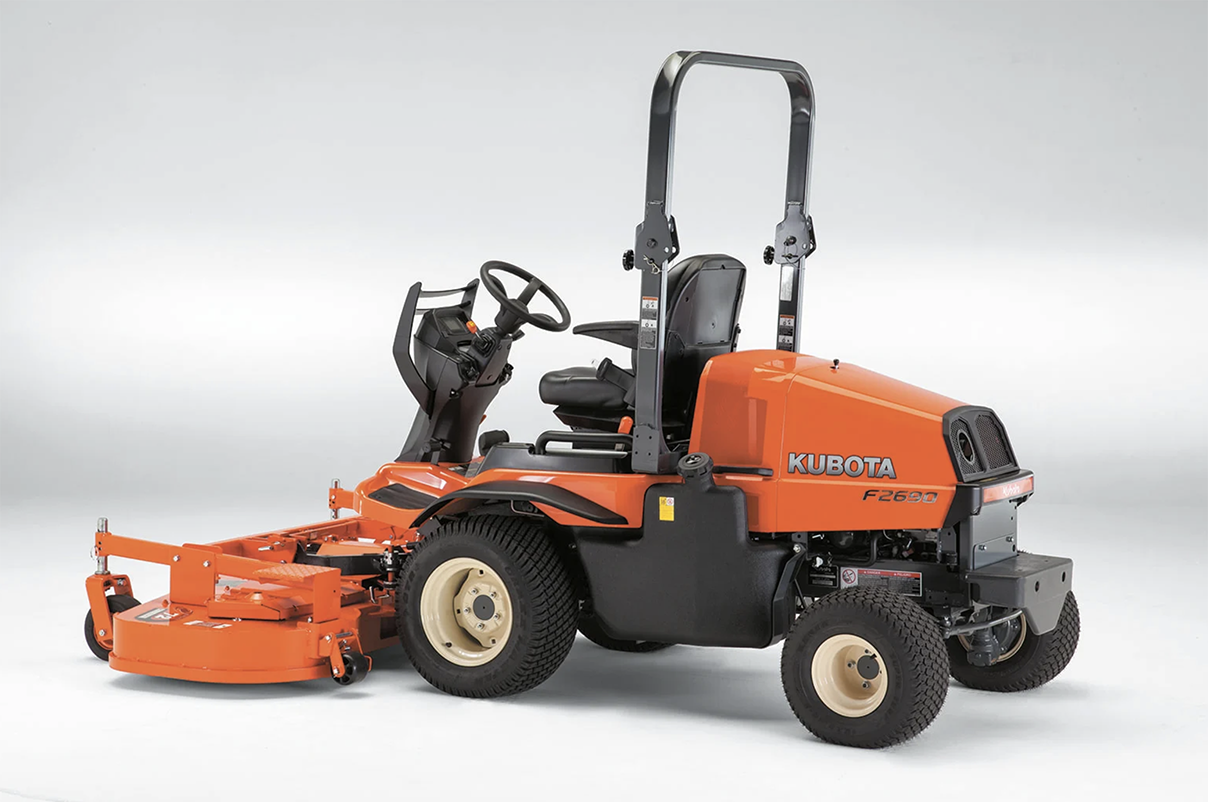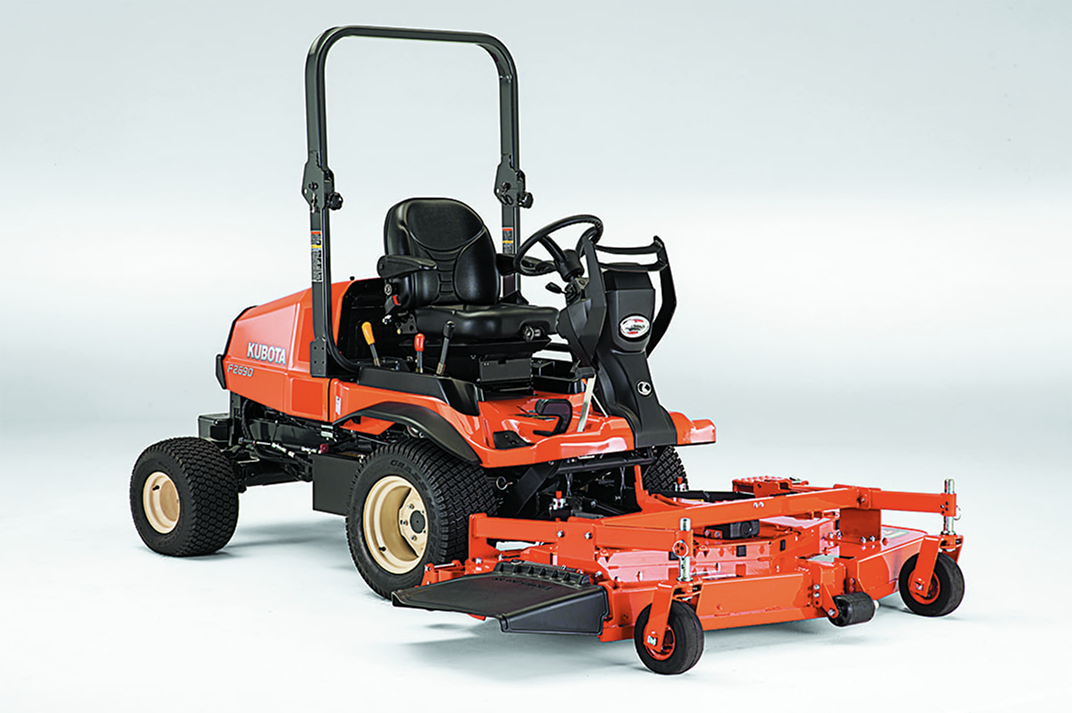 The Kubota F2690 lets you tackle tall and wet grass with ease, courtesy of a 24.8 horsepower diesel engine and mower deck designed to use less power. The six-inch deep, fabricated steel mowing deck is available in a 60-inch or 72-inch size and is ready to last you for years down the road. Maintenance is streamlined with the 90-degree tilt deck, quick-release engine cover and dual-element air cleaner, making your job easy on the lawn and off.